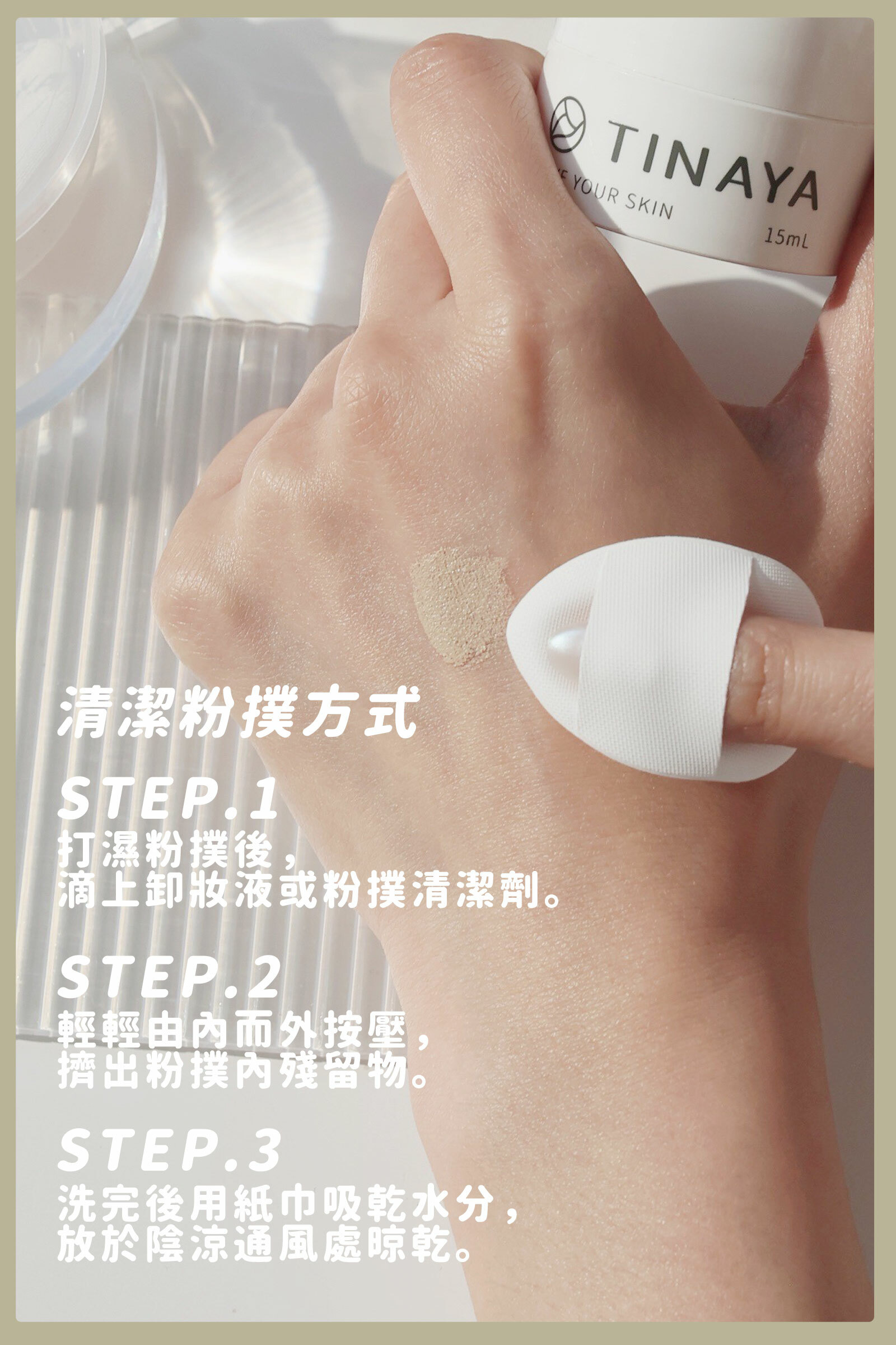 STEP.1 打濕粉撲後滴上卸妝液或粉撲清潔劑